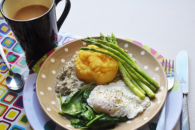 Even though oats did not make an appearance this morning, I was fully satisfied with this brekkie concoction. Polenta might be a winner.....I'll definitely have more polenta recipes up in the future!!